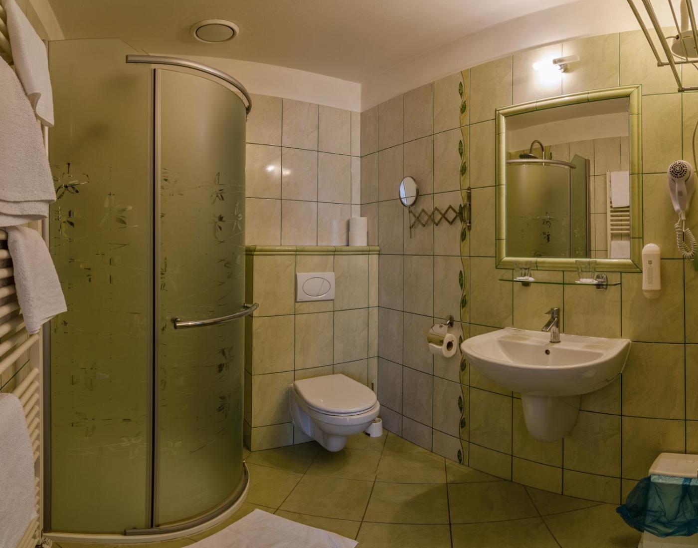 Čtyřlůžkový pokoj. Providing free toiletries, this quadruple room includes a private bathroom with a shower and a hairdryer. This quadruple room features a wardrobe, heating, a flat-screen TV and city views. The unit offers 3 beds.