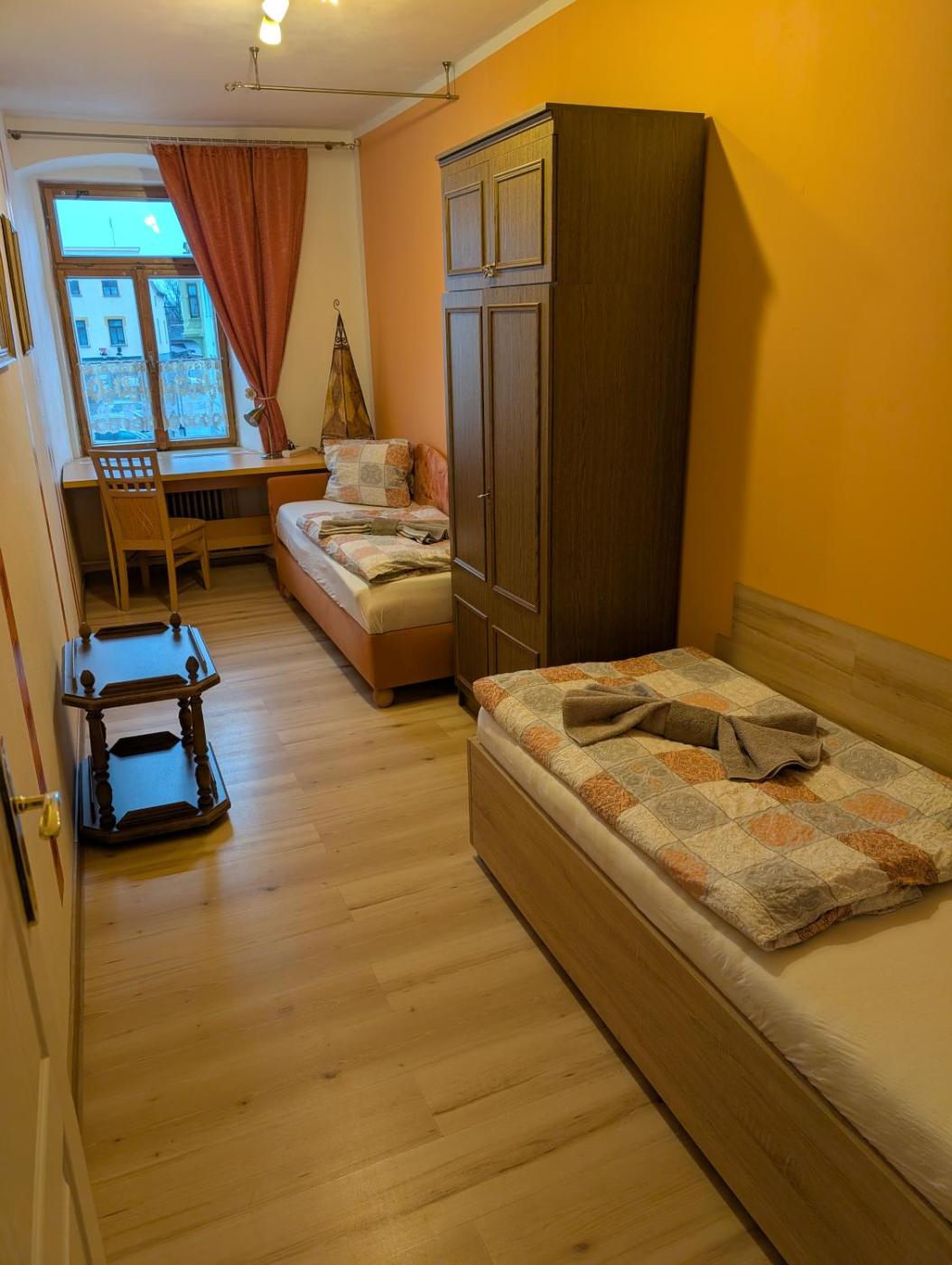 Dvoulůžkový pokoj s oddělenými postelemi. The twin room provides a tea and coffee maker, a wardrobe, as well as a shared bathroom featuring a bath and a shower. Guests can make meals in the kitchen that is equipped with a refrigerator, a dishwasher, kitchenware and an oven. This twin room features a high chair for children, heating, a flat-screen TV and city views. The unit offers 2 beds. ;